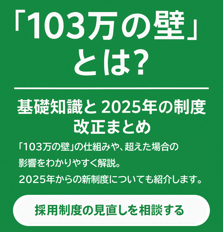 この記事では、「103万の壁」の仕組みや背景をはじめ、社会保険・扶養制度の関係、さらには2025年からの制度変更、企業として取るべき対応策まで、採用・雇用の視点からわかりやすく解説します。