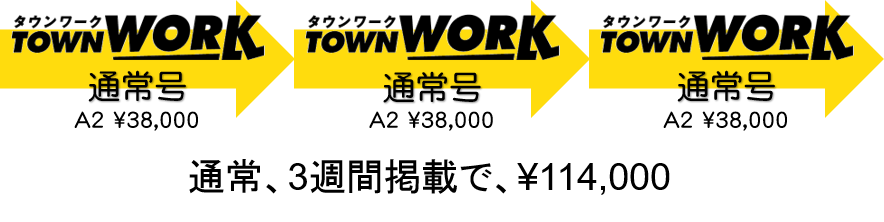 1週間の掲載期間が基本となるタウンワークですが、掲載のタイミングを特別号に合わせれば、プラス2万円~の追加料金で最大3週間の掲載ができる場合があります。