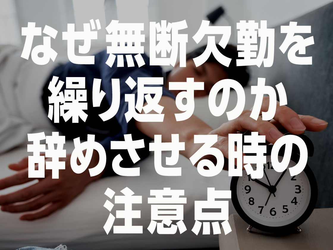 無断欠勤とは、就業日に従業員が連絡なく休むことを指します。無断欠勤を繰り返す従業員は、業務にも支障が出るためできれば辞めさせたい、という人事担当者も多いでしょう。けれども、無断欠勤を繰り返したからといってすぐに辞めさせることはできません。無断欠勤を繰り返す原因や理由を探ってヒアリングしたり、しかるべき措置を取ったりするのが重要です。無断欠勤を繰り返す従業員に悩んでいる人のために、無断欠勤の原因や理由、辞めさせるときの注意点などを解説します。