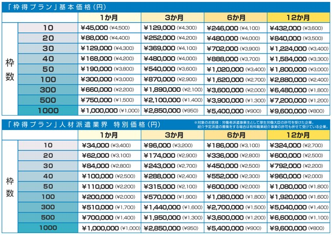人材派遣業界様用の特別プランや、リクルートのお得な割引回数券等もあるので必要な人数に合わせて採用活動をより効率的に行っていけます。