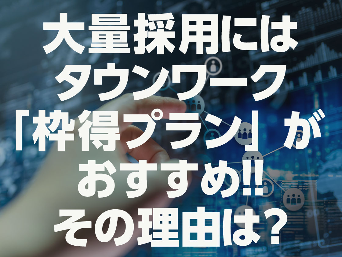 タウンワーク枠得プランは10原稿を一度に掲載できるので、慢性的な人手不足への効率的なうち手として「多店舗展開しているチェーン店様」や「職種別に大量採用をしたい企業様」には使い勝手の良い商品となっています。