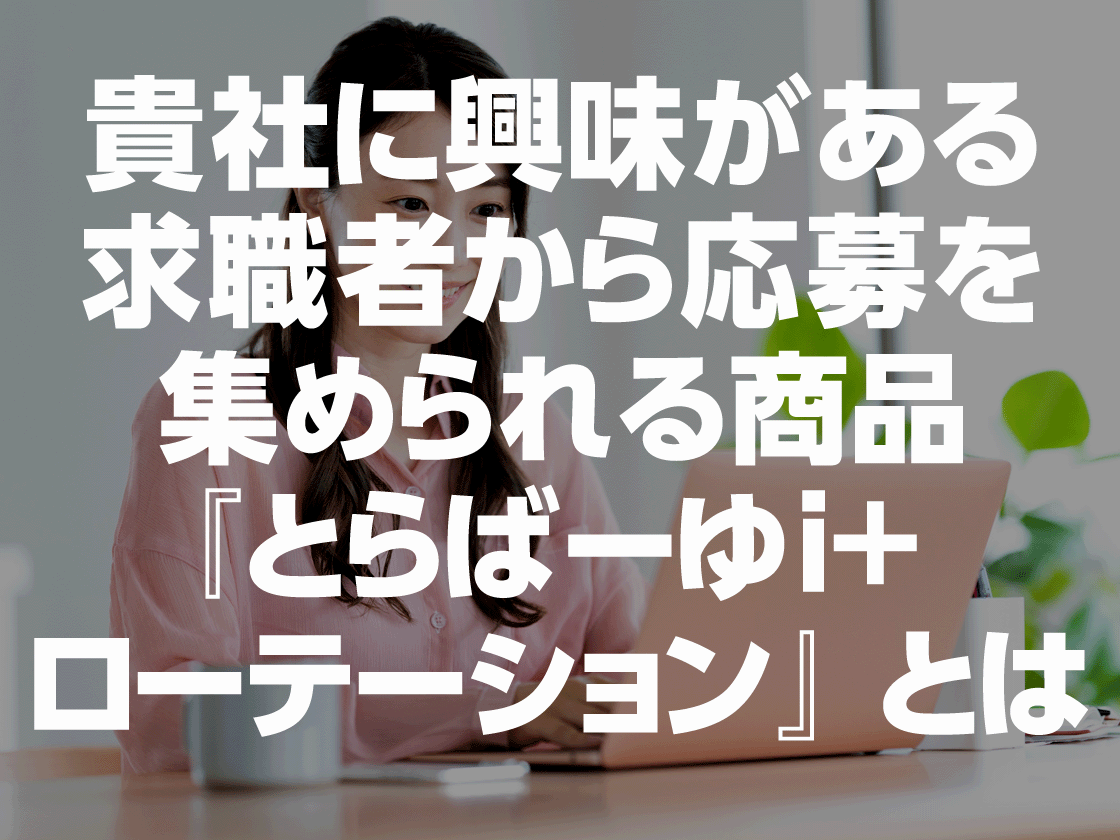 とらばーゆに掲載したものの、なかな応募がこない…来てもターゲット人材とは異なる…と、お困りではないでしょうか。求職者から貴社の求人を探し出してもらえていないかもしれません。今回はとらばーゆで、貴社に興味を持つ可能性が高い求職者からの発見性をUPさせる商品『とらばーゆi+ローテーション』をご紹介します。